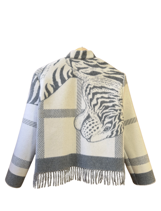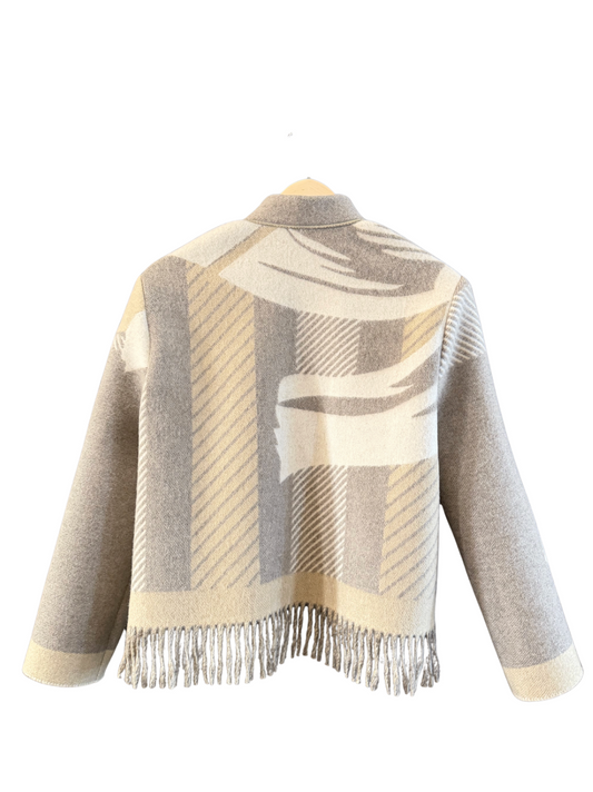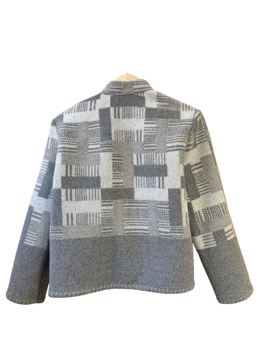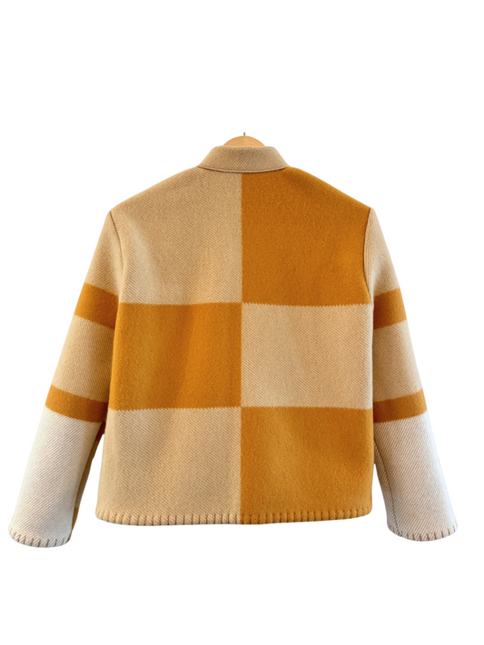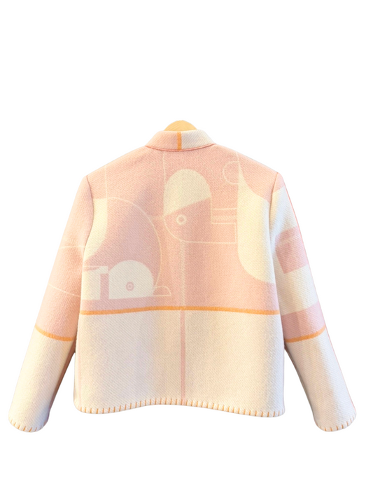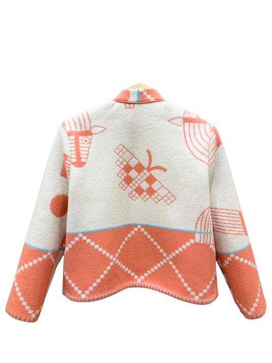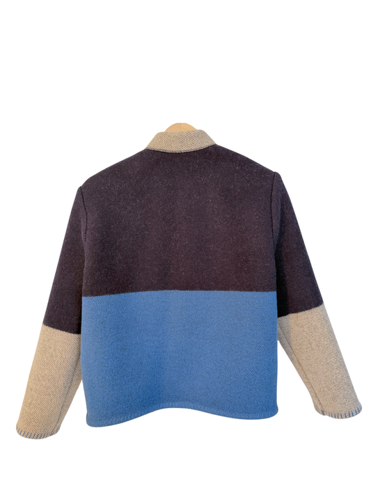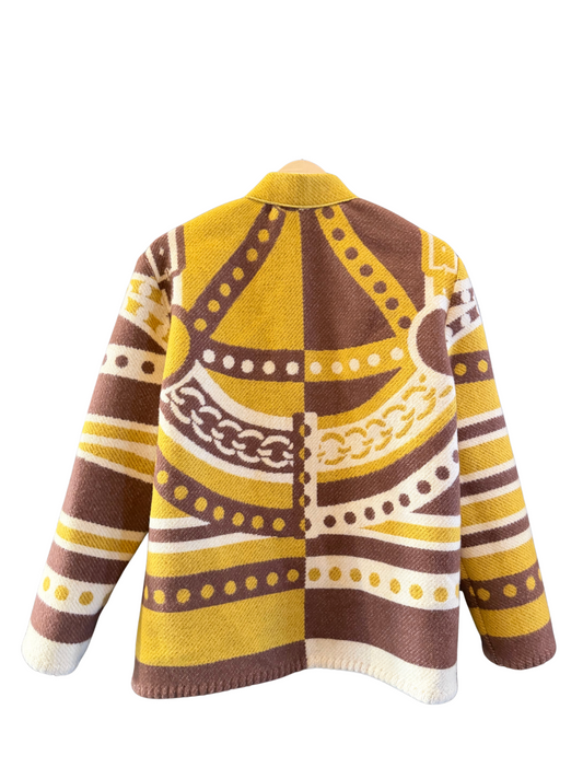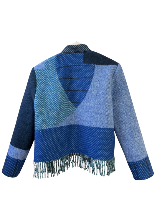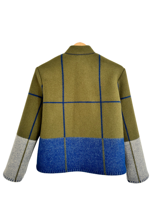 No two alike—by design. Each jacket in the Blanket Series is crafted from up-cycled designer blankets, selected for their bold colors, rich textures, and striking patterns. Hand-cut and sewn by Michel and Lily, every piece is one-of-a-kind—turning repurposed materials into wearable statements of individuality. Cozy, collectible, and consciously made.
