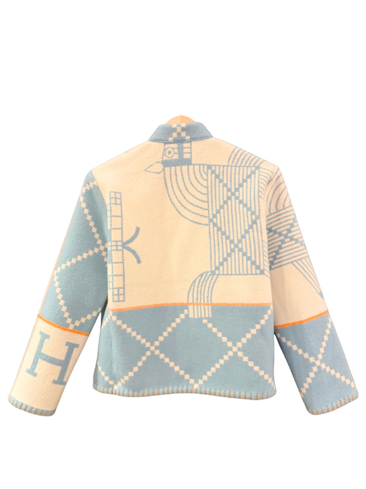 No two alike—by design. Each jacket in the Blanket Series is crafted from up-cycled designer blankets, selected for their bold colors, rich textures, and striking patterns. Hand-cut and sewn by Michel and Lily, every piece is one-of-a-kind—turning repurposed materials into wearable statements of individuality. Cozy, collectible, and consciously made.