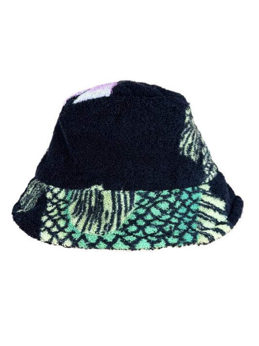 Playful. Plush. One-of-a-kind. Each hat is handmade from up-cycled designer towels, giving bold prints and soft textures a second life. Fully lined and sun-ready, these are statement hats with sustainable soul.