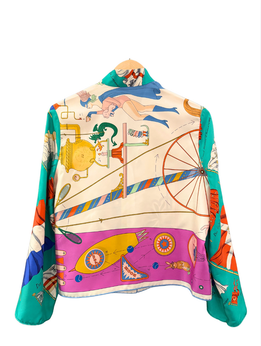 Where storytelling meets silk. Each jacket in the Silk Series is made from two up-cycled designer scarves, thoughtfully paired to highlight their individual patterns, prints, and artistry. The result? A one-of-a-kind piece that turns heritage silks into something entirely new. Lightweight, fluid, and effortlessly statement-making—no two are ever the same.