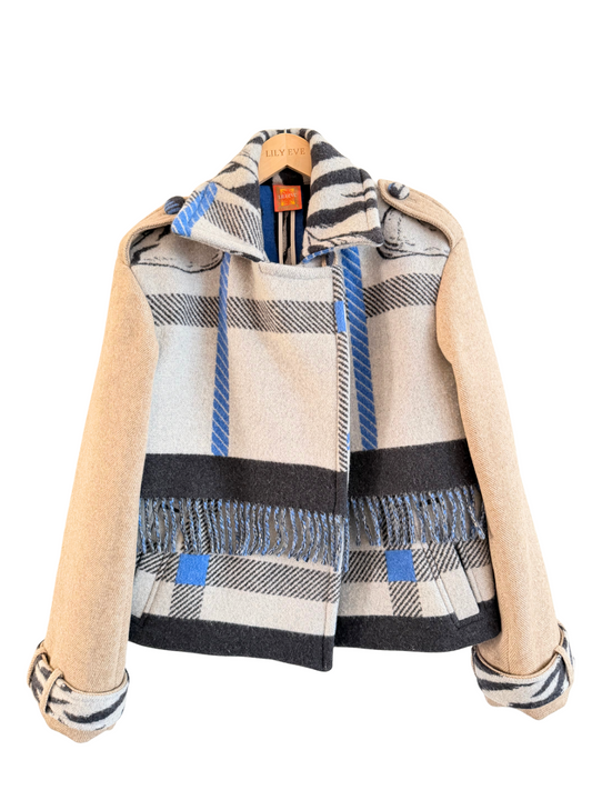 Timeless form, reimagined fabric. Each trench coat in this series is crafted from a combination of deadstock cashmere and up-cycled designer blankets—merging classic tailoring with bold, unexpected materials. The result: a one-of-a-kind outerwear statement that’s equal parts refined and rebellious.