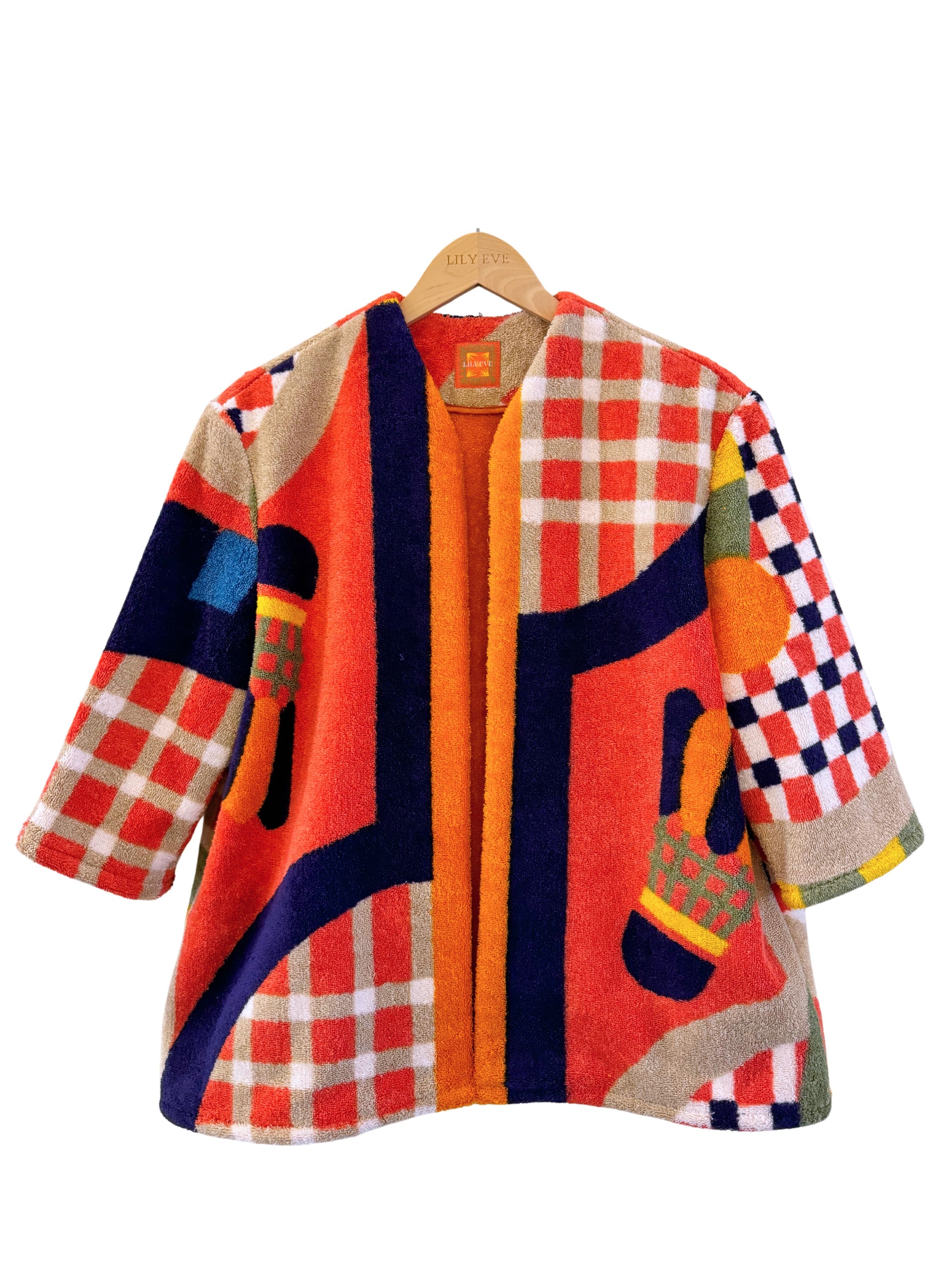 The Player Jacket by LilyEve is sustainably crafted from an authentic Hermes towel, transforming vintage terry towel into a one-of-a-kind piece. Proud partners, Michel & Lily use elements of curation and couture to provide unique pieces that stand the test of time.