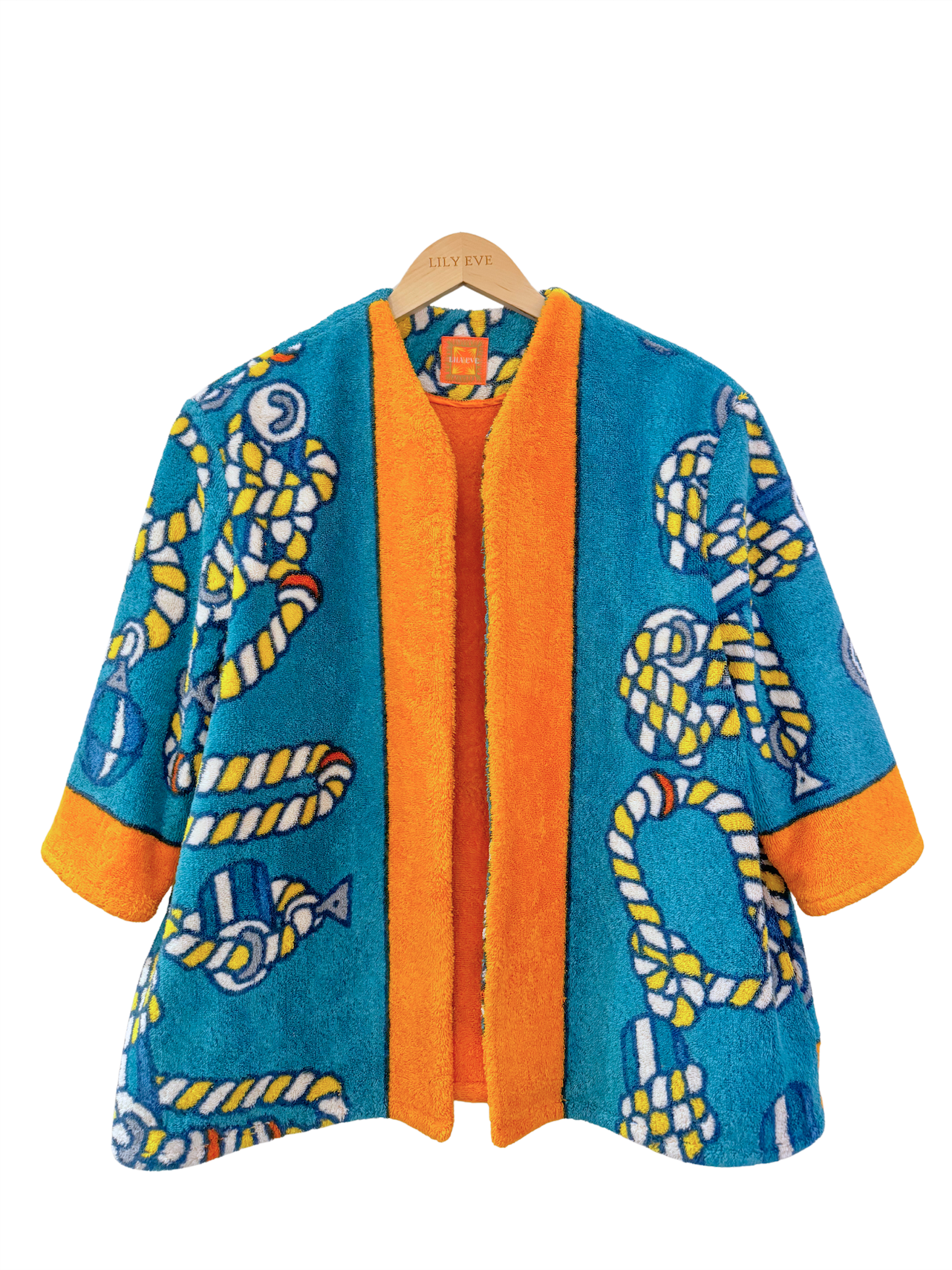 The Loop Letter Jacket by LilyEve is sustainably crafted from an authentic Hermes towel, transforming vintage terry towel into a one-of-a-kind piece. Proud partners, Michel & Lily use elements of curation and couture to provide unique pieces that stand the test of time.
