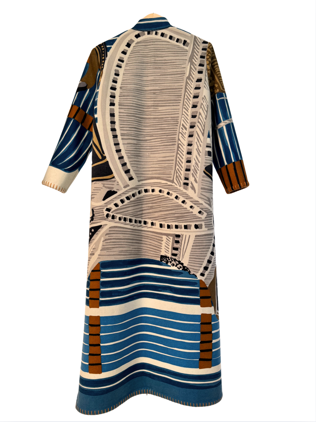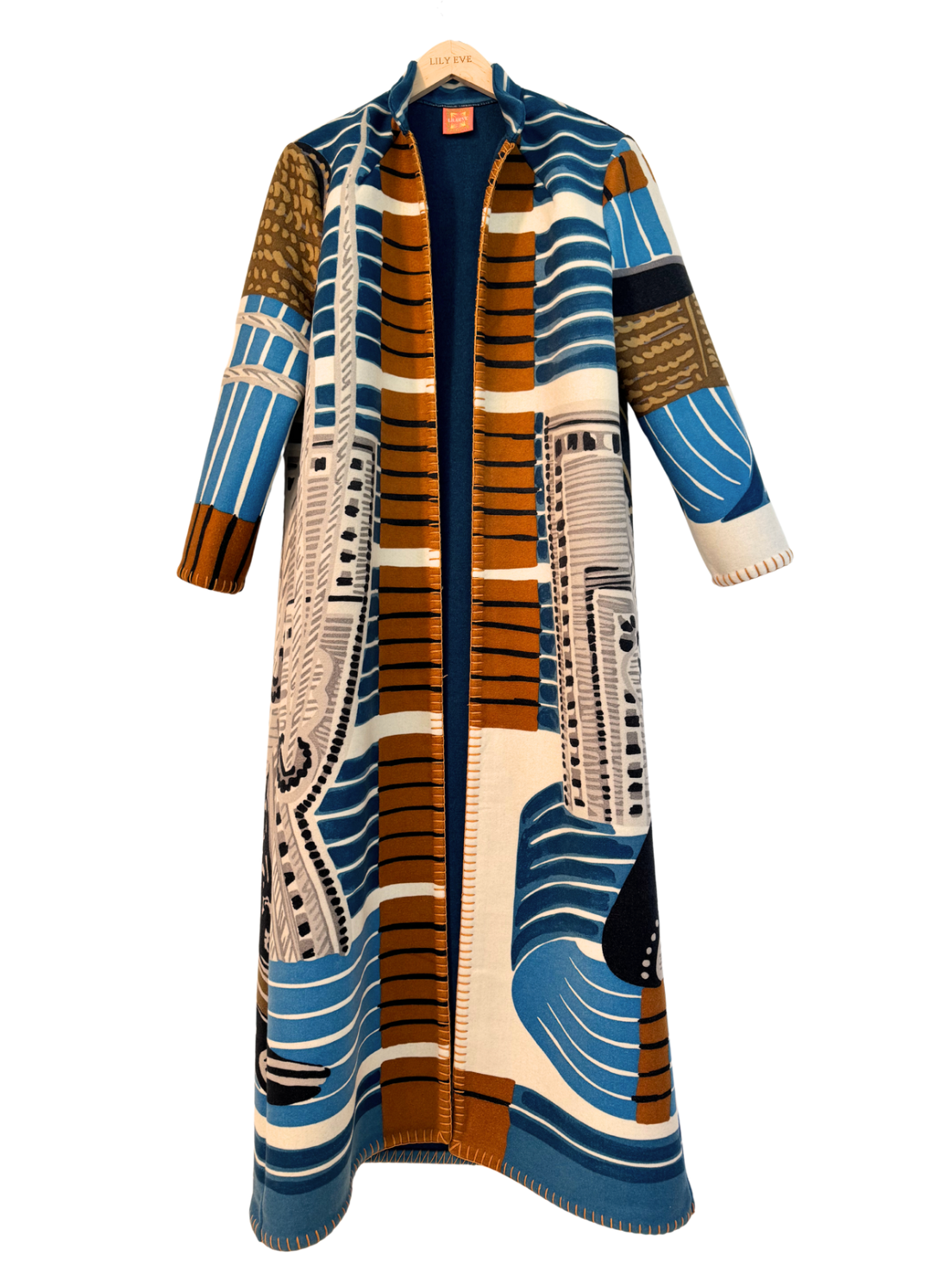 The Blue Grid Coat by LilyEve is sustainably crafted from an authentic Hermes blanket, transforming vintage cashmere wool into a one-of-a-kind piece. Proud partners, Michel & Lily use elements of curation and couture to provide unique pieces that stand the test of time.