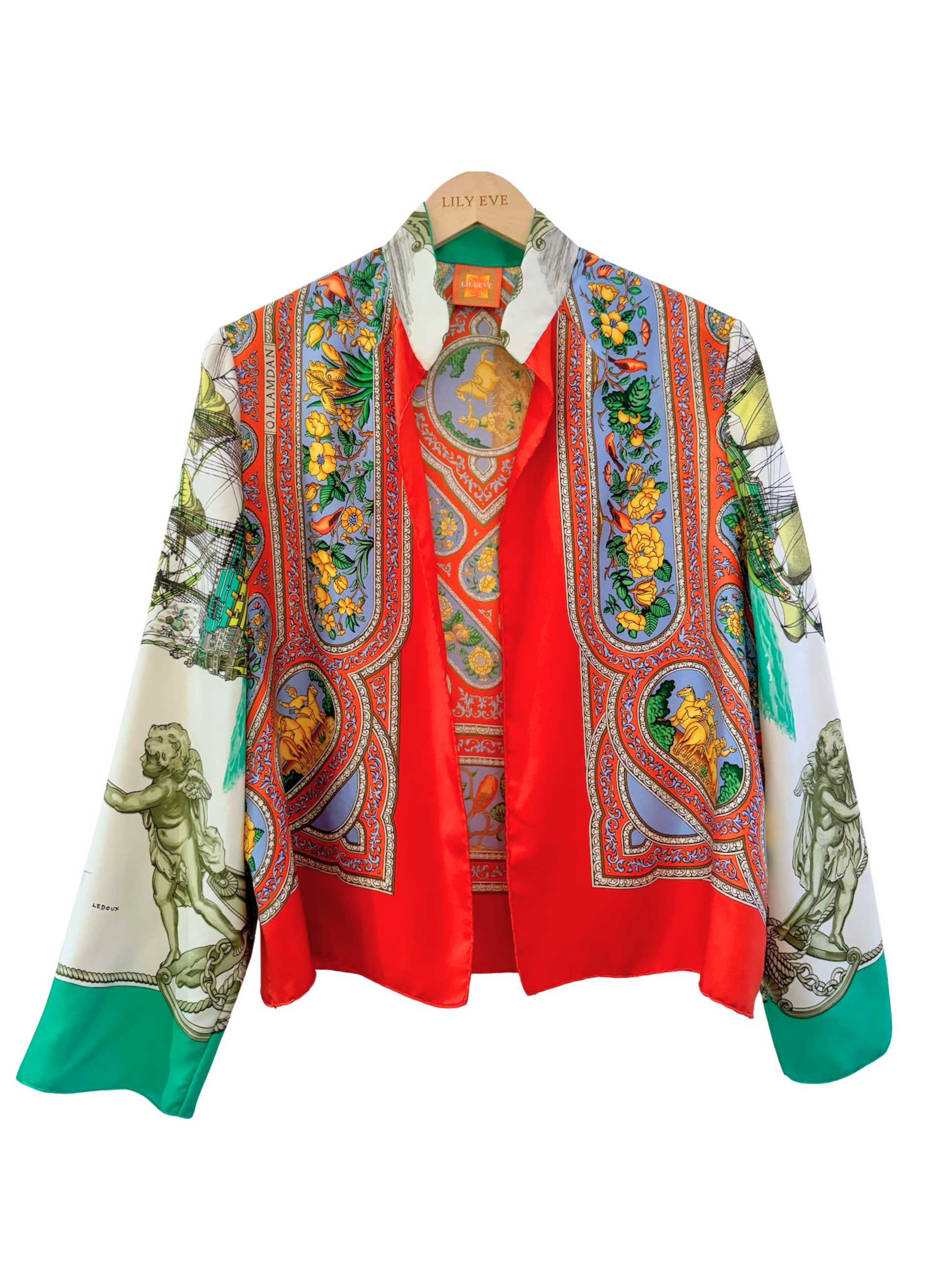 The Silk Series by LilyEve is sustainably crafted from authentic Hermes 100% silk scarfs, transforming luxurious silk into a one-of-a-kind piece.