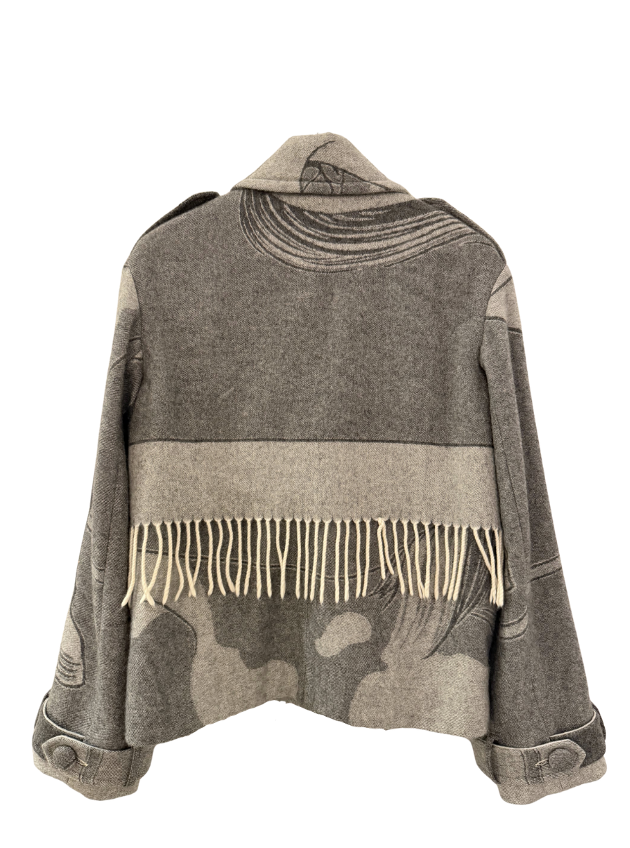 The Up-Cycled Cropped Trench by LilyEve is sustainably crafted from an authentic Hermes blanket, mixed with dead stock 100% cashmere, transforming vintage cashmere wool into a one-of-a-kind piece. Proud partners, Michel & Lily use elements of curation and couture to provide unique pieces that stand the test of time.